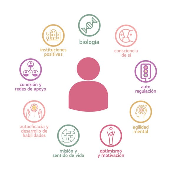 - Autoeficacia y Logro desde el empoderamiento, aprovechando las 24 fortalezas humanas.